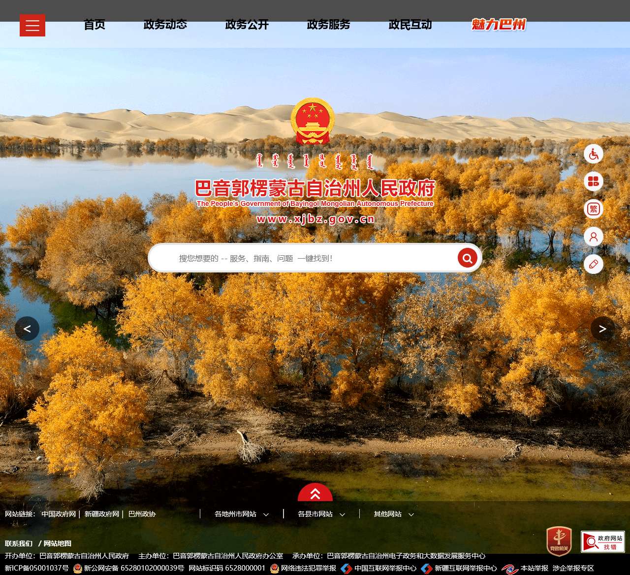 | 地区 | 中国政府网、新疆政府网、巴州政协、乌鲁木齐市、伊犁哈萨克自治州、塔城地区、阿勒泰地区、博尔塔拉蒙古自治州、昌吉回族自治州、吐鲁番市、哈密市、阿克苏地区、克孜勒苏柯尔克孜自治州、喀什地区、和田地区、克拉玛依市、库尔勒市、轮台县、尉犁县、且末县、若羌县、焉耆县、和静县、和硕县、博湖县 |