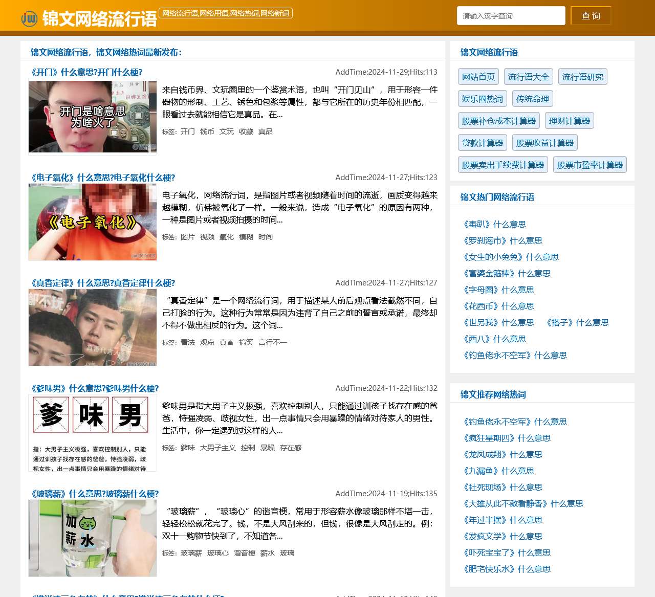- 网络流行语大全,提供最新和最热门的网络用语和梗。