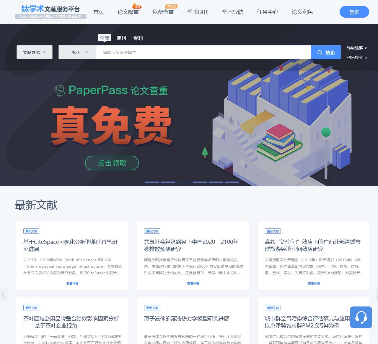 钛学术文献服务平台拥有1.5亿可下载的论文文献资源,涵盖有学术期刊论文丶会议论文 、专利文献等,满足广大科研工作者对期刊论文 、会议论文 、专利文献查询下载需求。