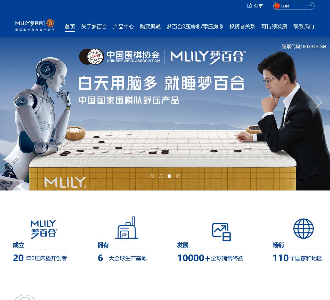 上海梦百合家居科技有限公司是一家专业从事记忆绵床垫等床垫品牌系列产品的研发、设计、生产、销售、营销的科技型企业,致力于用0压床垫,提升人类的深度睡眠。旗下”MLILY梦百合”床垫品牌诞生于2008年,同时也是曼联全球官方合作伙伴。