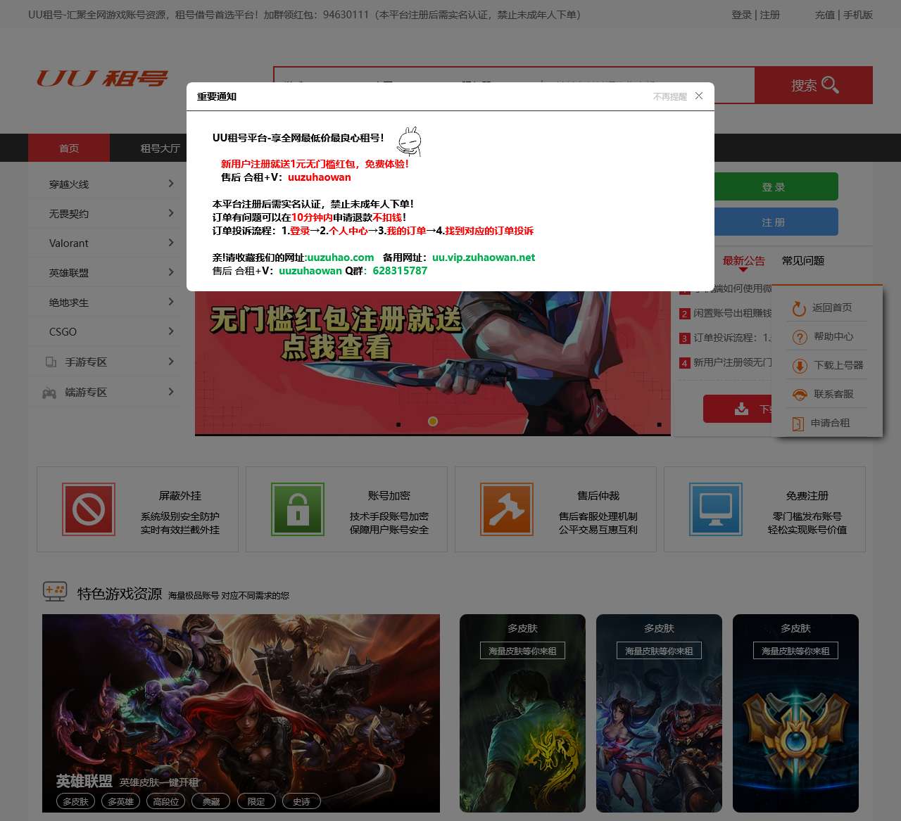 UU租号平台是无畏契约(Valorant),穿越火线(CF),英雄联盟(LOL),绝地求生,王者荣耀,QQ飞车,steam等游戏租号交易平台网站,无需帐号密码,玩家登录上号器即可随时随地畅玩游戏。-国内专业游戏租号推广平台,cf,lol等游戏高级账户无需密码即可畅玩,低门槛推广租号多样盈利,安全放心创业加盟赚钱!