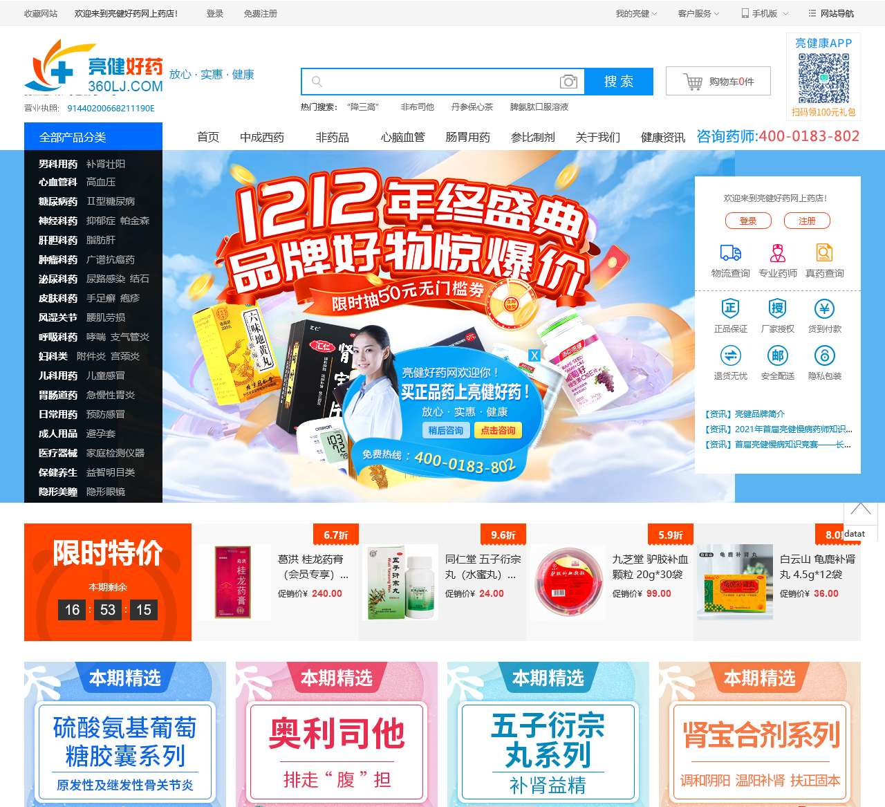 | 账户管理 | 我的亮健、我的订单、我的优惠券、找回密码、意见反馈等 |