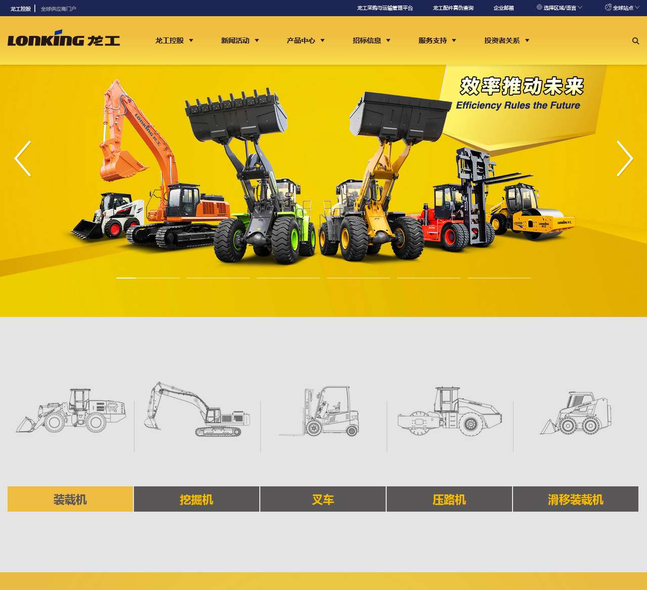 | 产品中心 | 装载机:30系列、40系列、50系列、60系列、70系列、电动装载机、石料叉装机、小型装载机、特殊产品 挖掘机:效率王PRO系列、超越者系列、多样化产品 叉车:内燃叉车、电动叉车、仓储叉车 压路机:机械驱动单钢轮振动、全液压单钢轮振动、光轮静碾压路机、全液压驱动双钢轮振动 滑移装载机 |