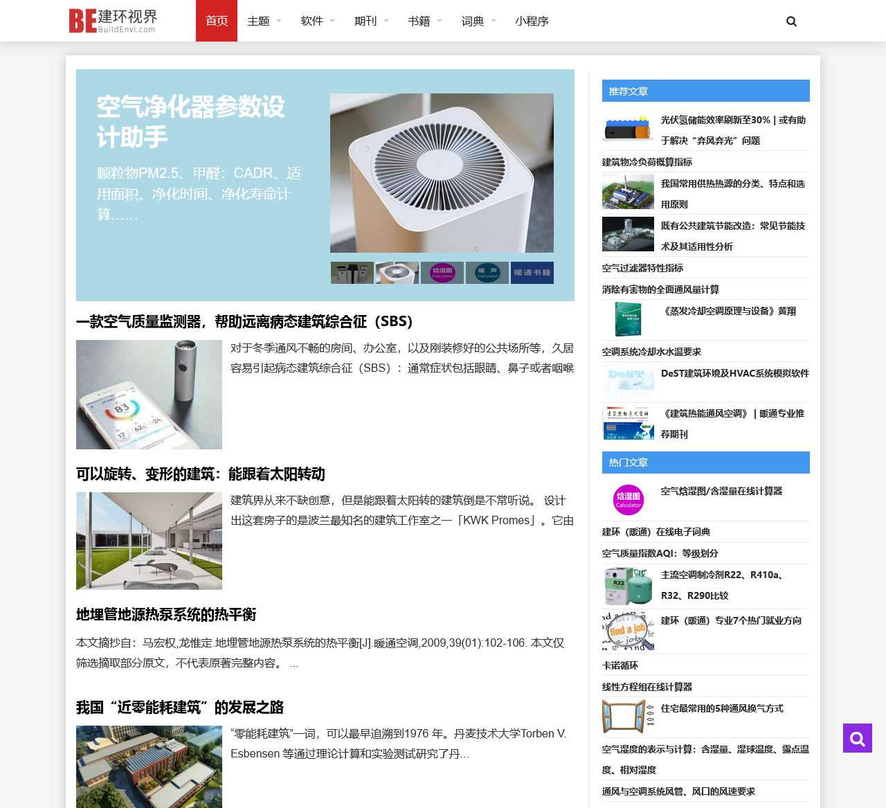 | 主题内容 | 首页、新闻、供暖、空调、空气污染与净化、绿色建筑、建筑节能、可再生能源、百科知识、建环专业 |