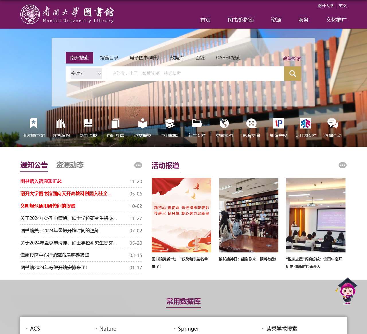 - 在线服务:如论文提交、学科服务、信息服务、书刊捐赠等。