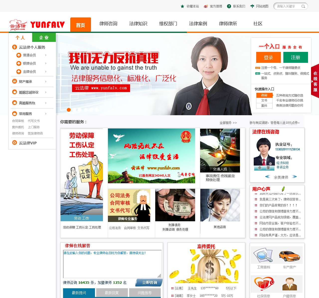 | 法律案例 | 婚姻案例、医疗事故、继承案例、刑事案例、劳资纠纷、行政案例、债权债务、其他案例、交通事故 |