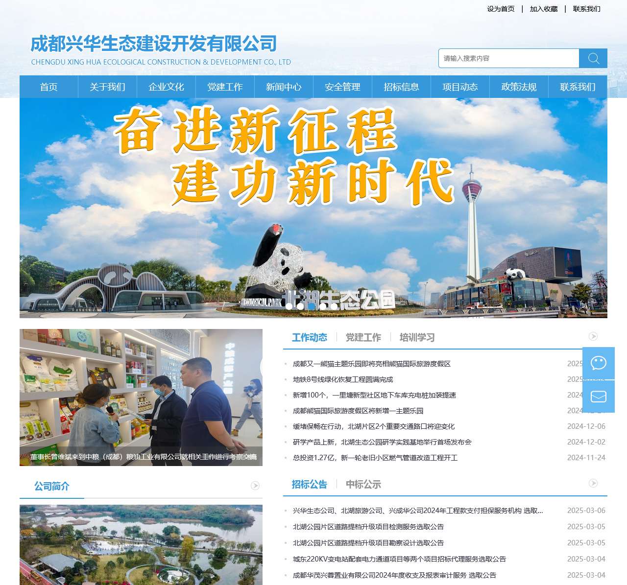 | 公司介绍 | 首页, 关于我们, 公司简介, 内设机构, 部门职能, 招贤纳士, 企业文化, 企业理念, 员工风采, 党建工作, 工作动态 |
