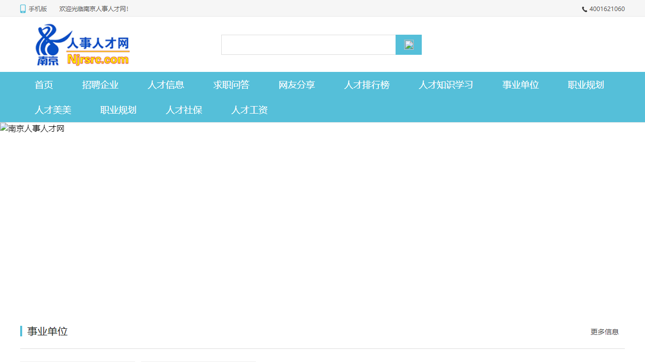 在职业规划板块,南京人事人才网提供了事业单位和职业规划相关的信息。另外,还有关于人才美美、人才社保和人才工资的内容。