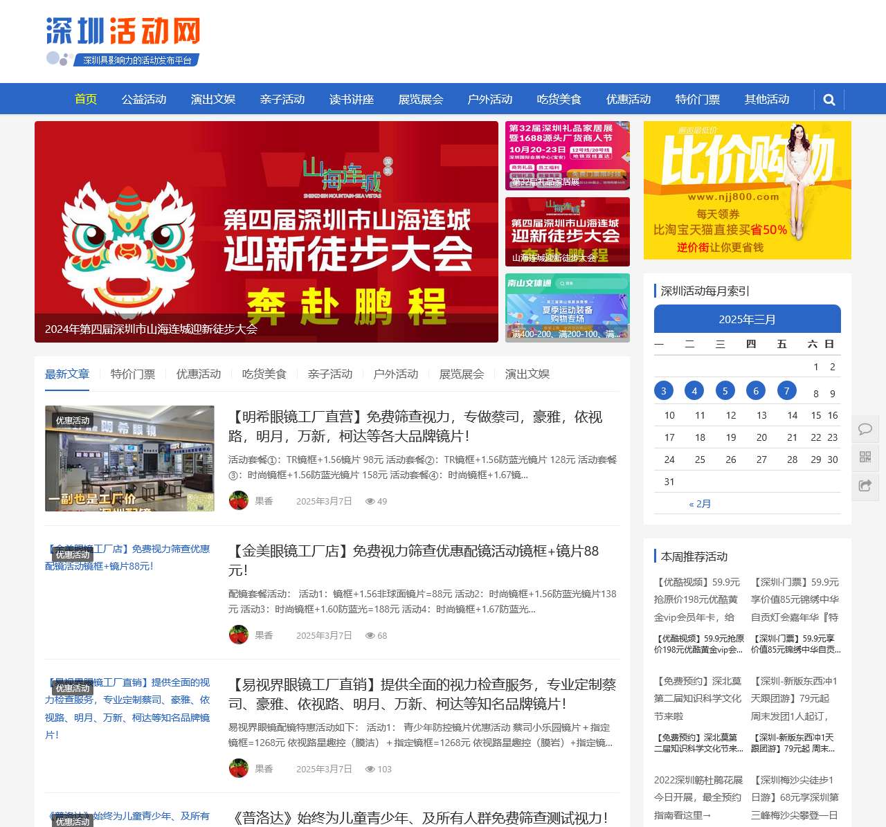 深圳权威活动网站,发布亲子活动,演出文娱,户外运动,公益活动等受深圳妈妈,上班族,白领喜欢和参与的活动信息,是深圳影响力最大,人气最旺的活动网站。