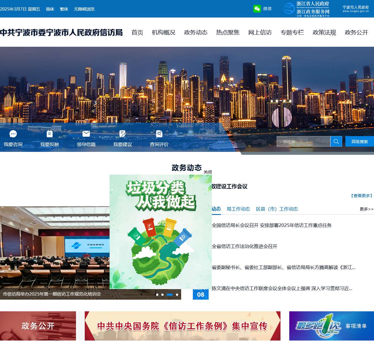 | 政务动态 | 上级工作动态、局工作动态、区县(市)工作动态 | 包括最新动态与地方信访局工作汇报 |