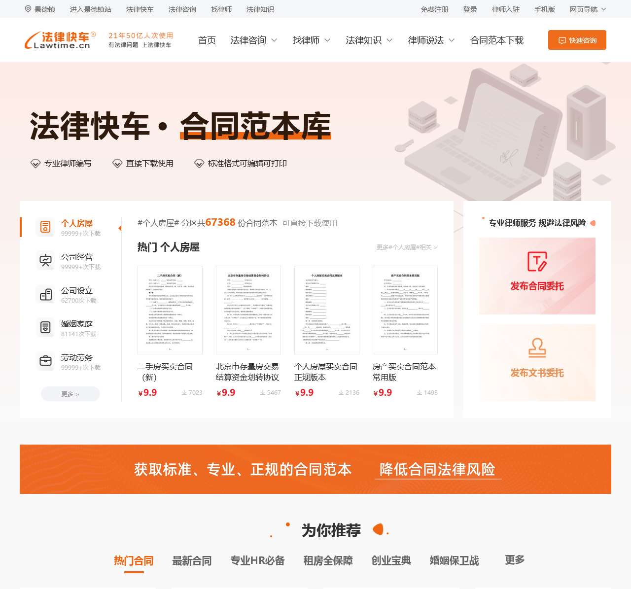 - 合同模板下载:提供各类法律合同范本,如房屋买卖合同、劳动合同等。