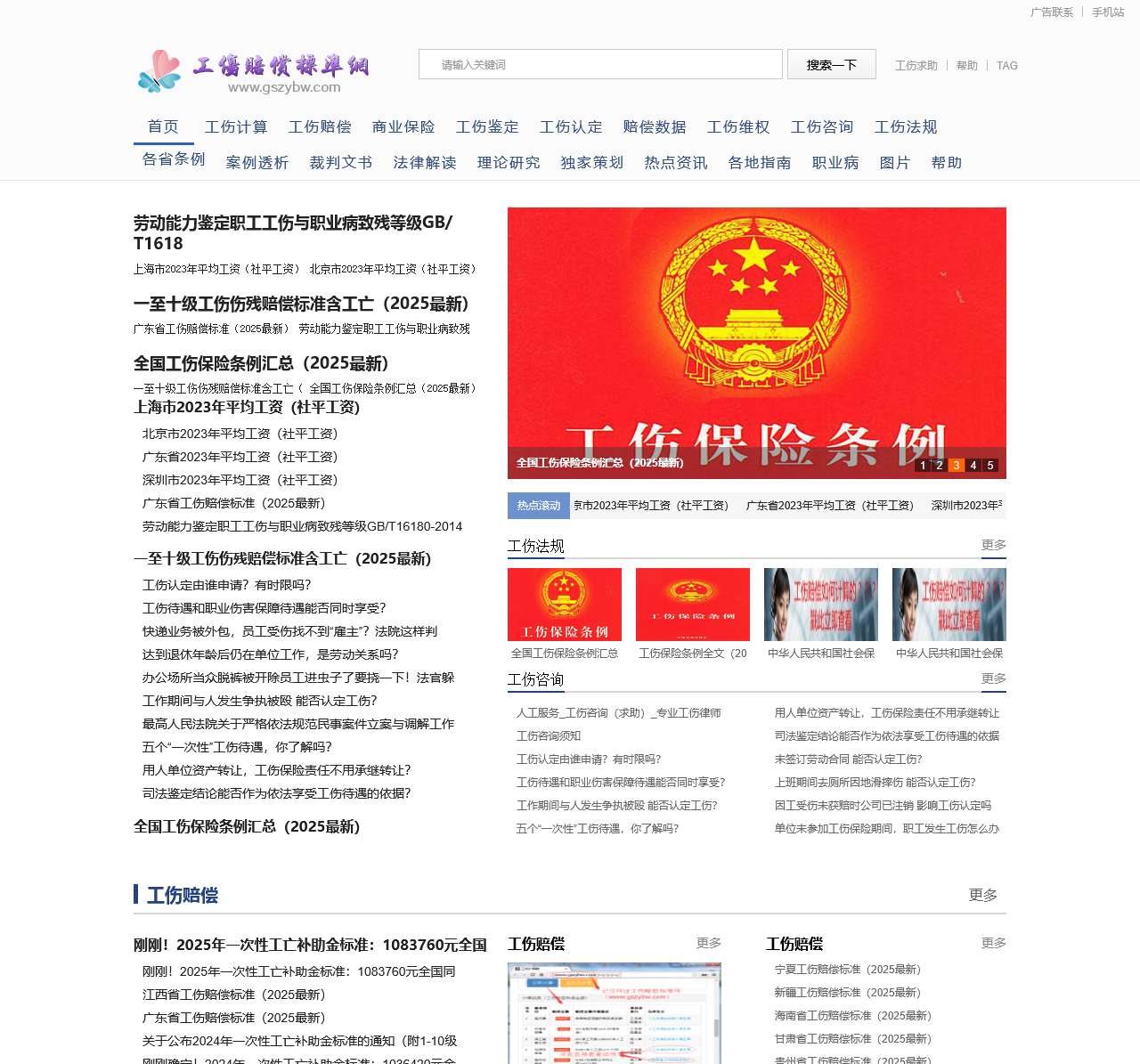 工伤门户网站,专业提供全国各地最新最权威的工伤赔偿标准,查询,还能打印下载赔偿的项目、金额、赔偿依据、赔偿清单等,使其秒懂工伤赔偿。旗下栏目覆盖工伤赔偿、工伤鉴定、工伤认定、以及工伤案例分析,典型工伤裁判文书查看等。工伤就上工伤赔偿标准网(www.gszybw.com)你的赔偿超乎你想象。