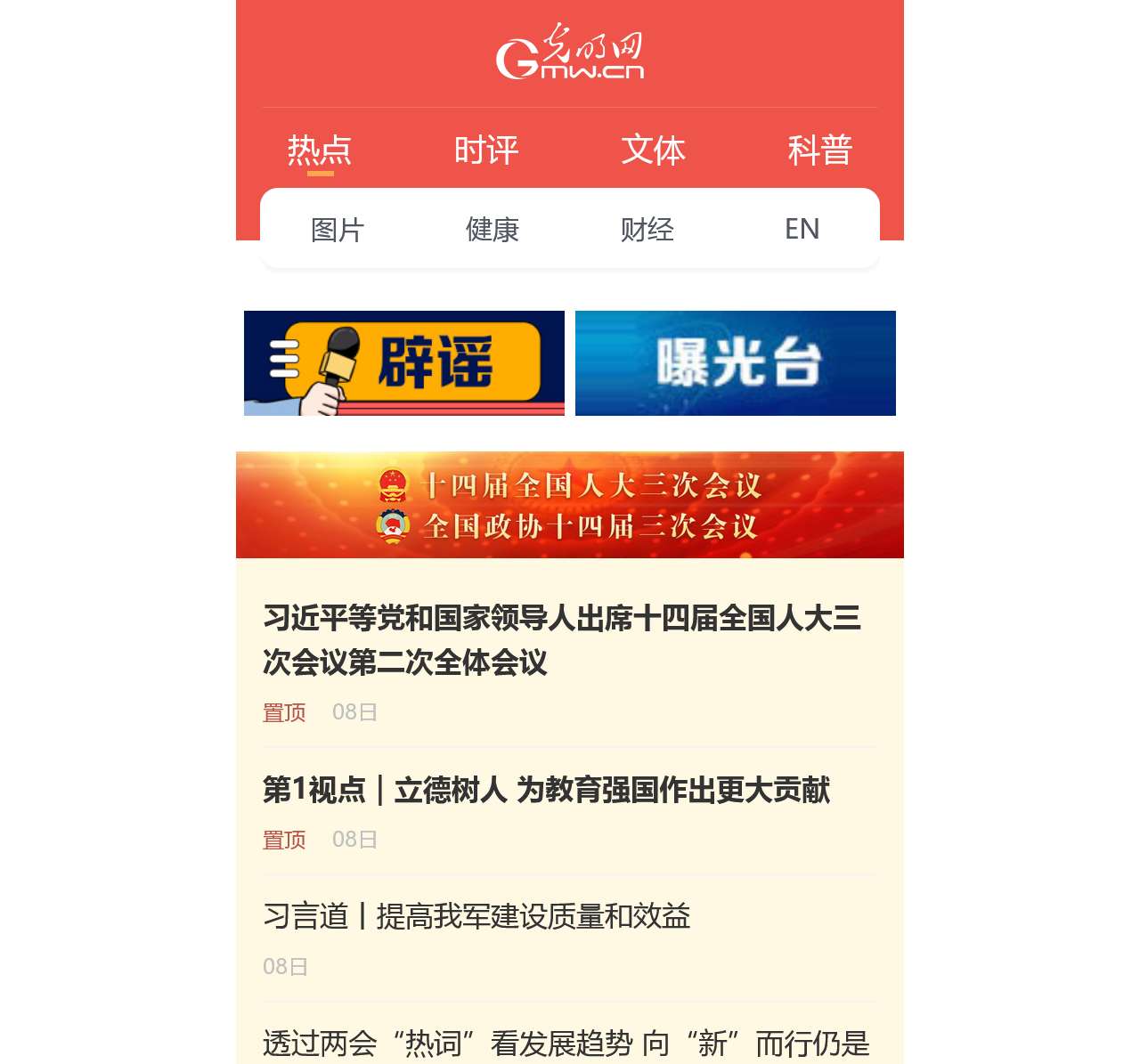 | 热点 | 习近平等党和国家领导人出席十四届全国人大三次会议第二次全体会议 |