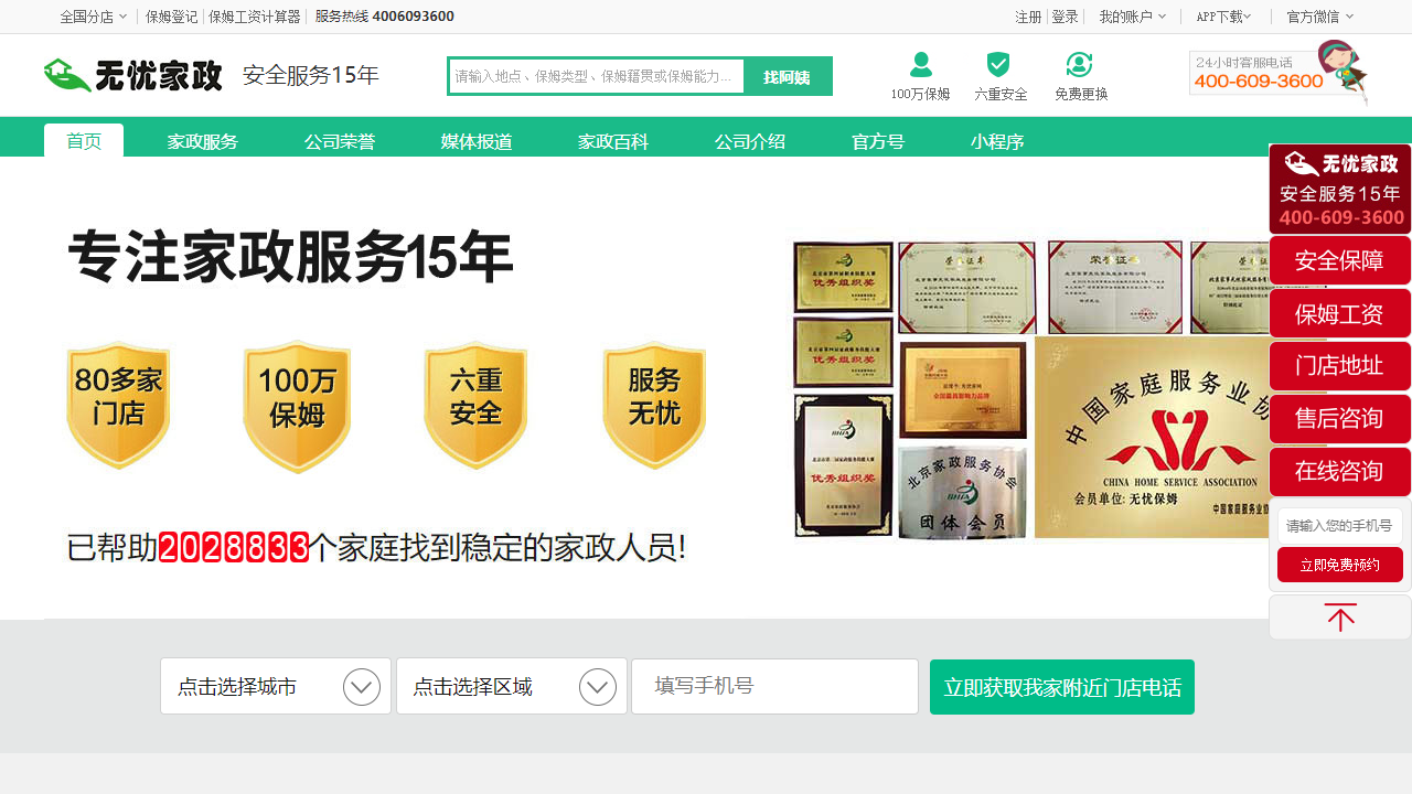 无忧保姆网是一家专业的家政服务平台,为用户提供全国范围内的优质保姆和家政人员。我们在北京、深圳、武汉、成都、上海、广州、西安、长沙、重庆、天津、杭州、青岛、郑州、南京、南通、佛山等地设有分店,以便更好地满足用户的需求。