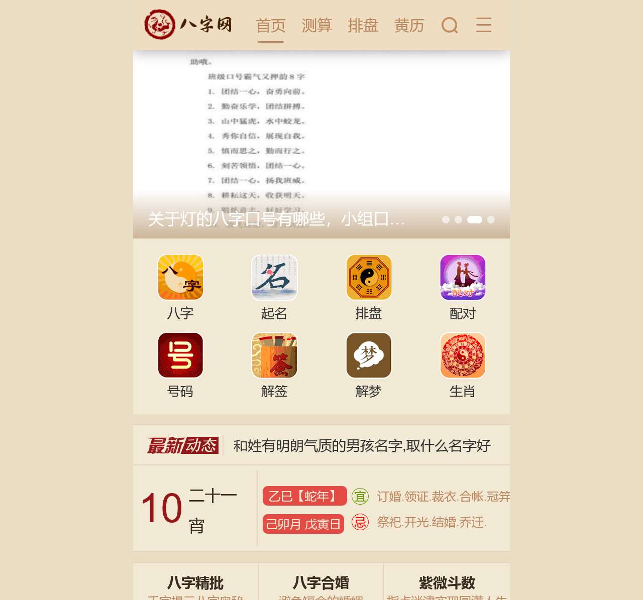 | 首页 | 测算、排盘、黄历、搜索 | 提供各种命理学的测算工具,如排盘、解梦、起名、号码吉凶等功能。 |