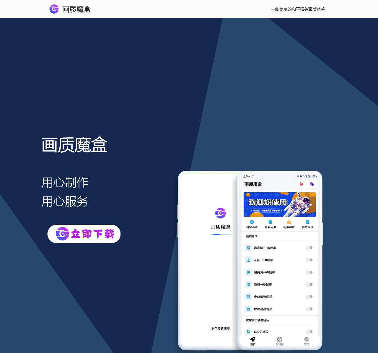 画质魔盒APP是一款免费画质助手专门为和平精英手游玩家所编写的画质修改工具!主打高简洁!高性能!UI美观!追求完美的APP,软件永久免费