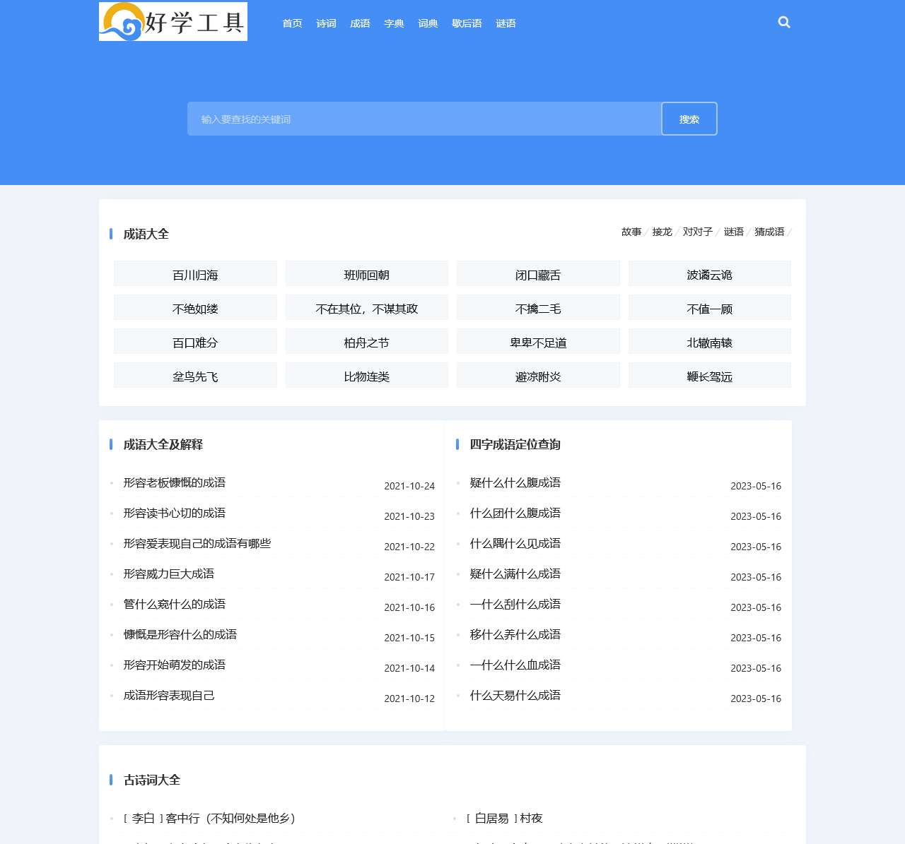 | 首页 | 提供网站所有功能入口,包括诗词、成语、字典等模块 |