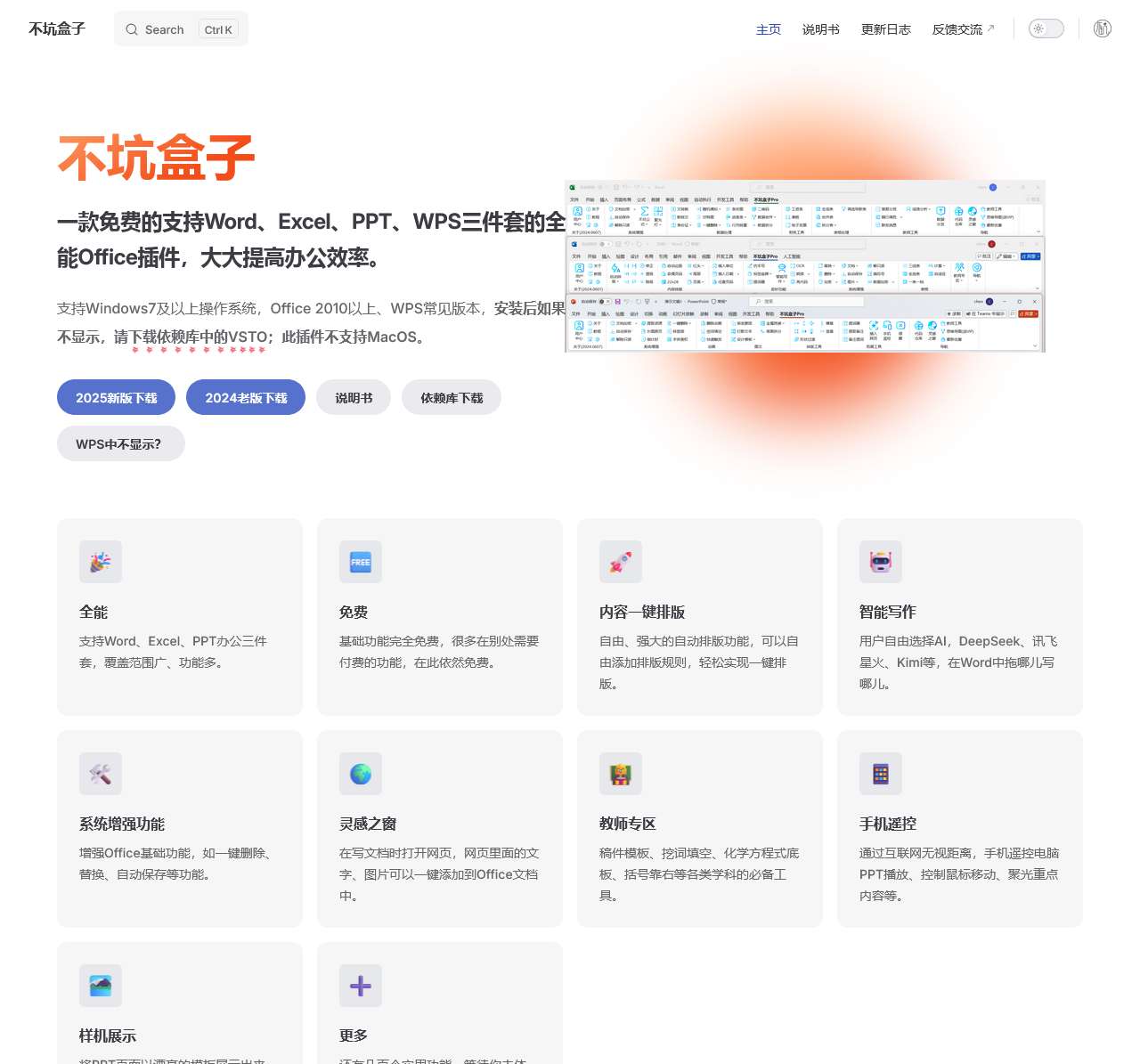 一款免费的支持Word、Excel、PPT、WPS三件套的全能Office插件,大大提高办公效率。