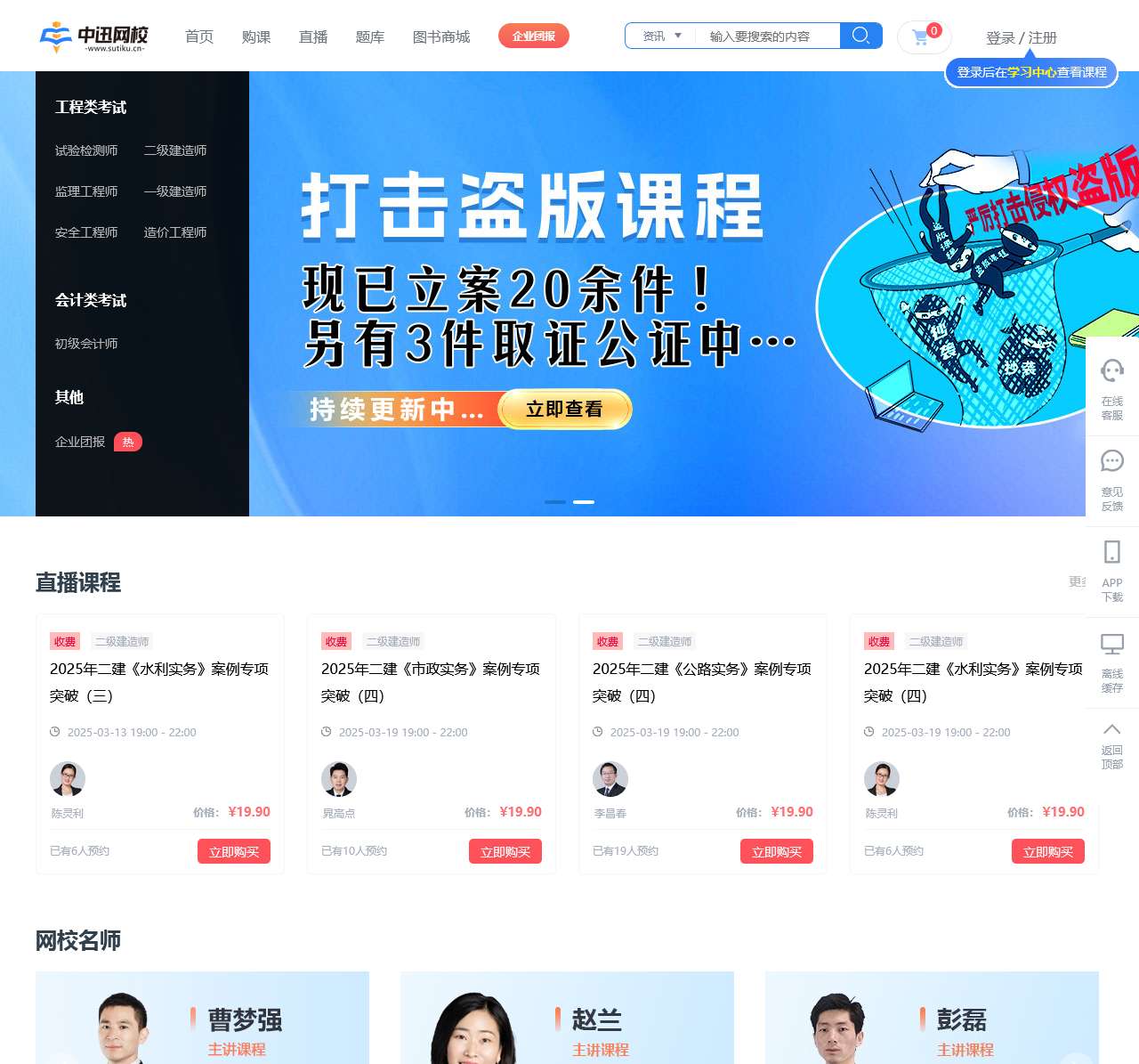 - 购课:提供各种专业课程选择,包括二级建造师、监理工程师等。