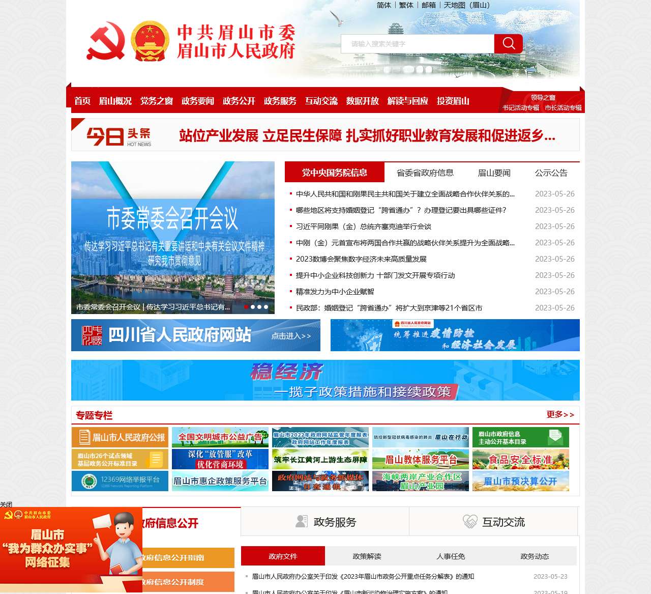 眉山市人民政府网是眉山市政府的官方网站,提供政务信息和政策服务。该网站致力于为市民和企业提供便捷的政务服务,同时发布眉山市的最新政务动态和重大通知。