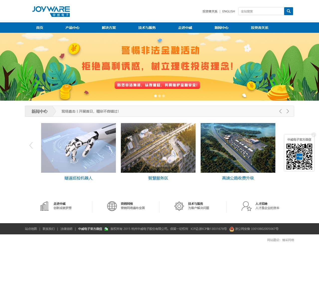 | 首页 | 投资者关系, English, 产品中心, 前端产品, 后端产品, 控制产品, 显示产品, 热成像产品, 软件产品, 解决方案, 技术与服务, 企业介绍, 荣誉殿堂, 企业资质, 成功案例, 招贤纳士, 联系我们 |