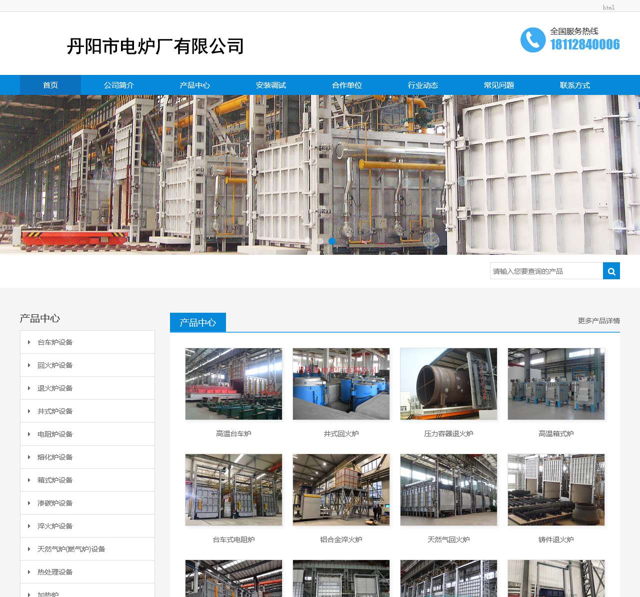 | 产品中心 | 高温台车炉、井式回火炉、压力容器退火炉、高温箱式炉、台车式电阻炉、铝合金淬火炉、天然气回火炉、铸件退火炉、叉车快速淬火炉、台车式热处理炉、台车燃气炉、台车式加热炉。 |
