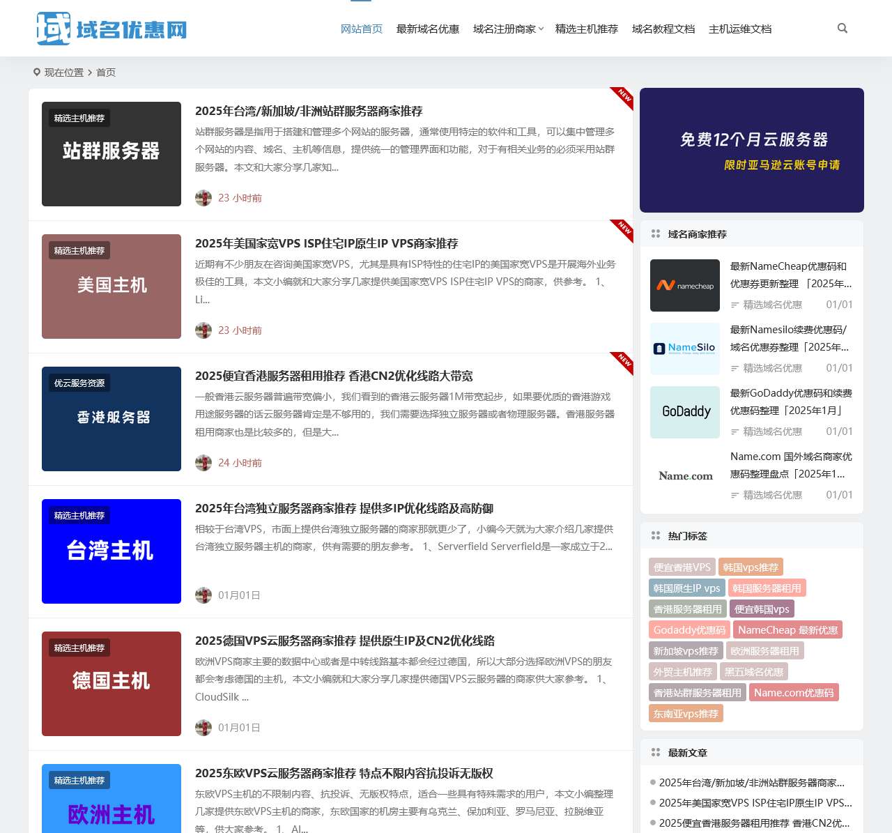| 最新域名优惠 | 更新了NameCheap、Namesilo、GoDaddy等域名优惠码和续费优惠 | 持续更新优惠信息 |