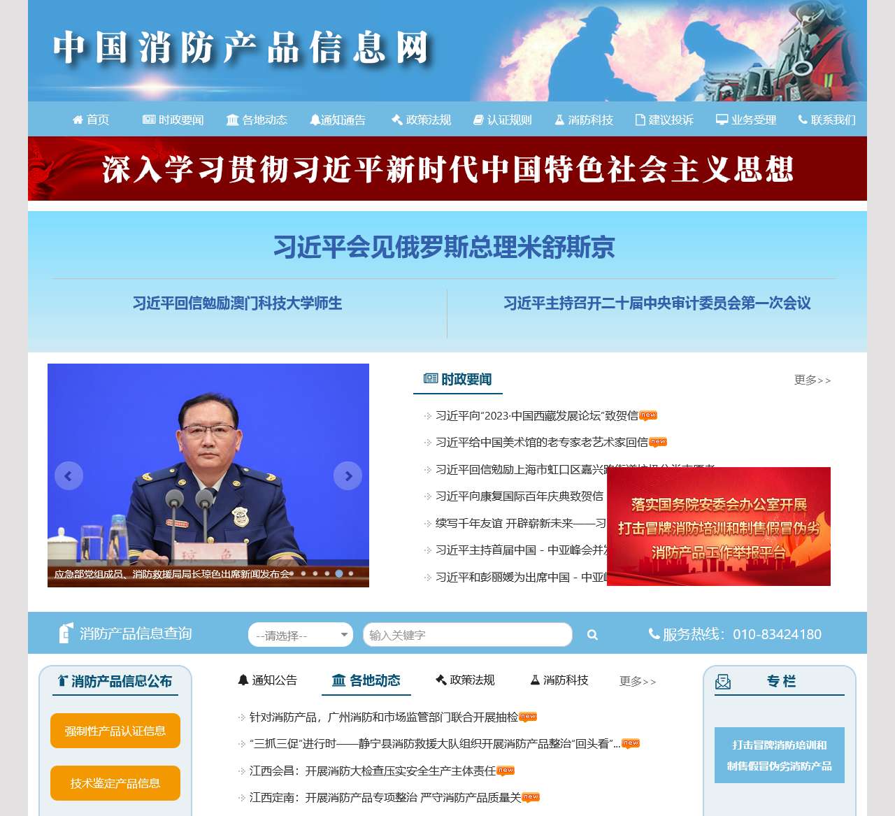 中国消防产品信息网是一个提供消防产品相关信息的网站,旨在为用户提供全面、准确的消防产品信息和服务。以下是中国消防产品信息网首页的主要内容: