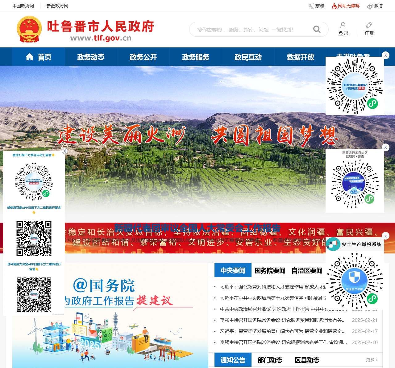 | 政务动态 | 包括国务院、自治区及吐鲁番地区的新闻和动态,例如:新疆代表团审议全国人大常委会工作报告,习近平重大讲话精神的学习与传达等。 |
