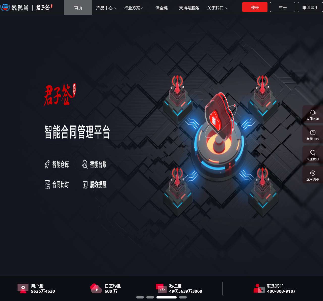 君子签是专业的电子合同平台,为用户提供电子签约、电子签章、合同管理、数据存证、 司法服务的一站式电子签,帮助用户实现降本增效,随时随地完成在线签署及实时存证,保障签署的合同不可改并可追溯。