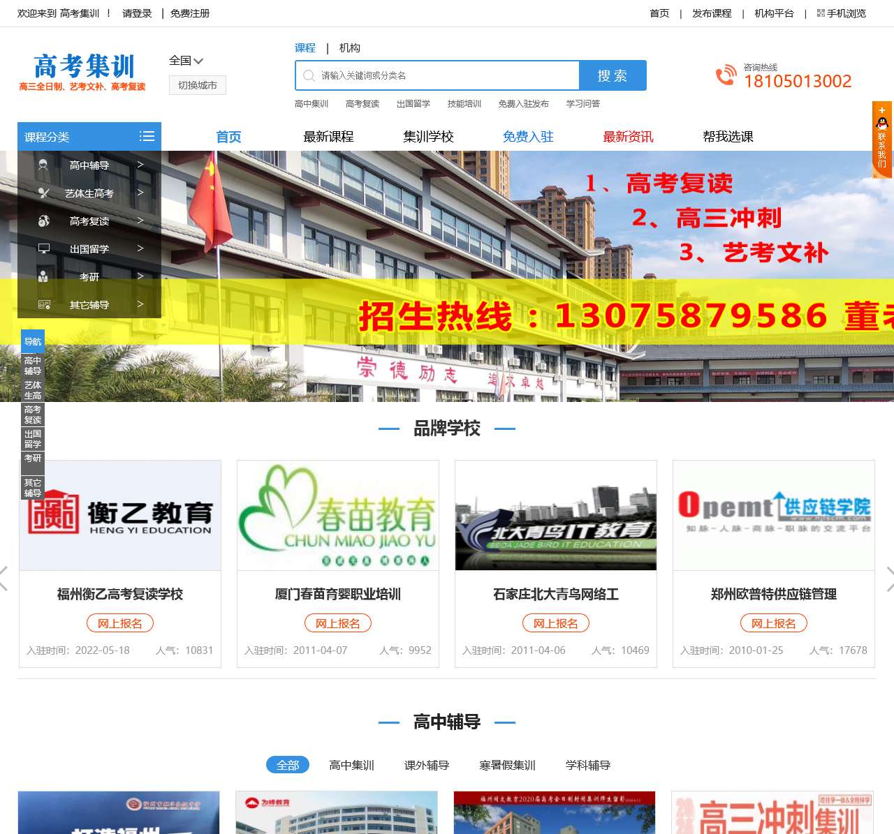 - 提供高考集训课程,包括高中全日制、高三冲刺班、寒暑假集训等。