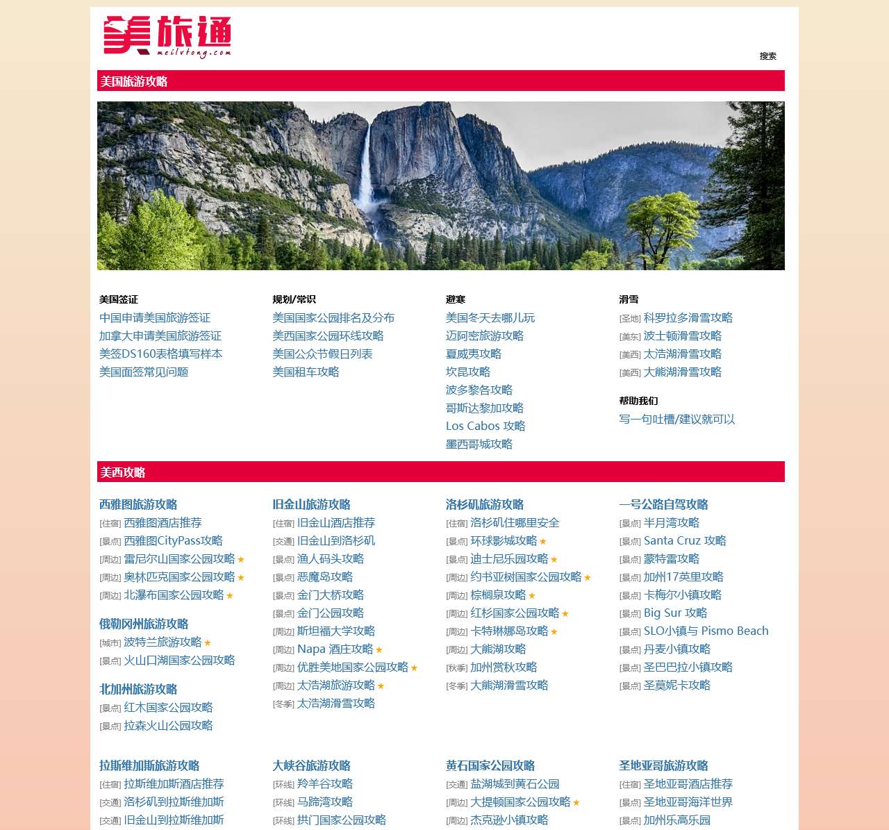 | 加州与西部旅游 | – 旧金山旅游攻略 – 拉斯维加斯旅游攻略 – 加州赏秋攻略 – 加州17英里攻略 |