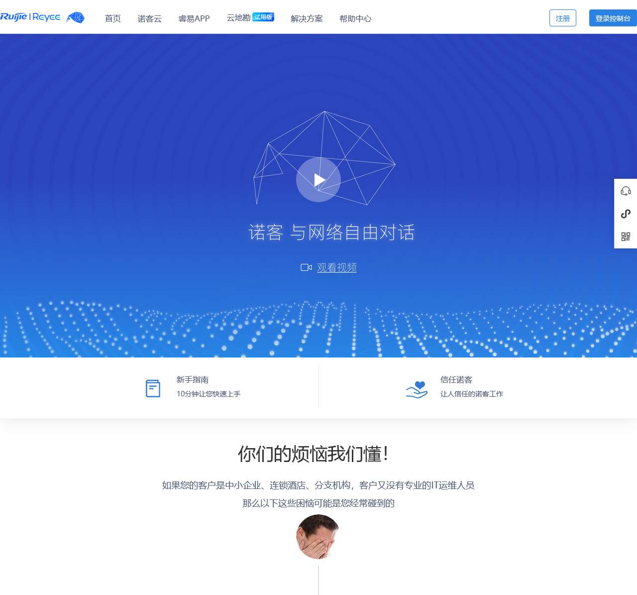 诺客平台,是锐捷网络推出的针对中小企业全网云管理平台,支持无线、交换、网关全系列产品的云管理,同时,扩展有微信认证、专享WiFi、客流分析等多种业务应用组件。