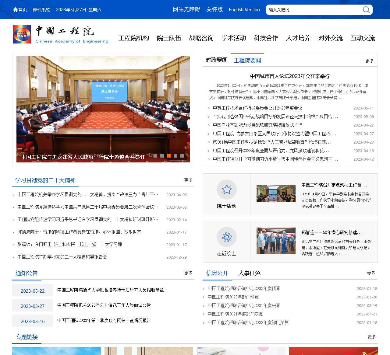 中国工程院(Chinese Academy of Engineering)是中国最高的工程科学技术学术机构之一,成立于1994年。它的主要任务是开展工程科学技术的研究和咨询工作,推动工程科学技术的发展和应用。