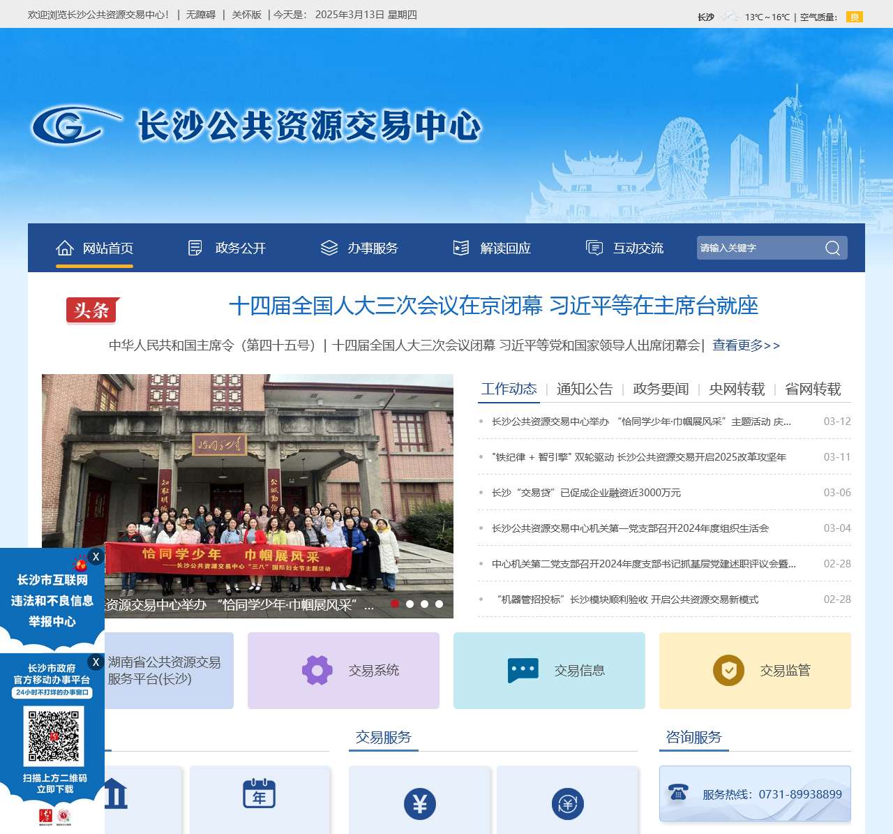 - 交易信息:包括长沙公共资源交易平台的最新交易信息。