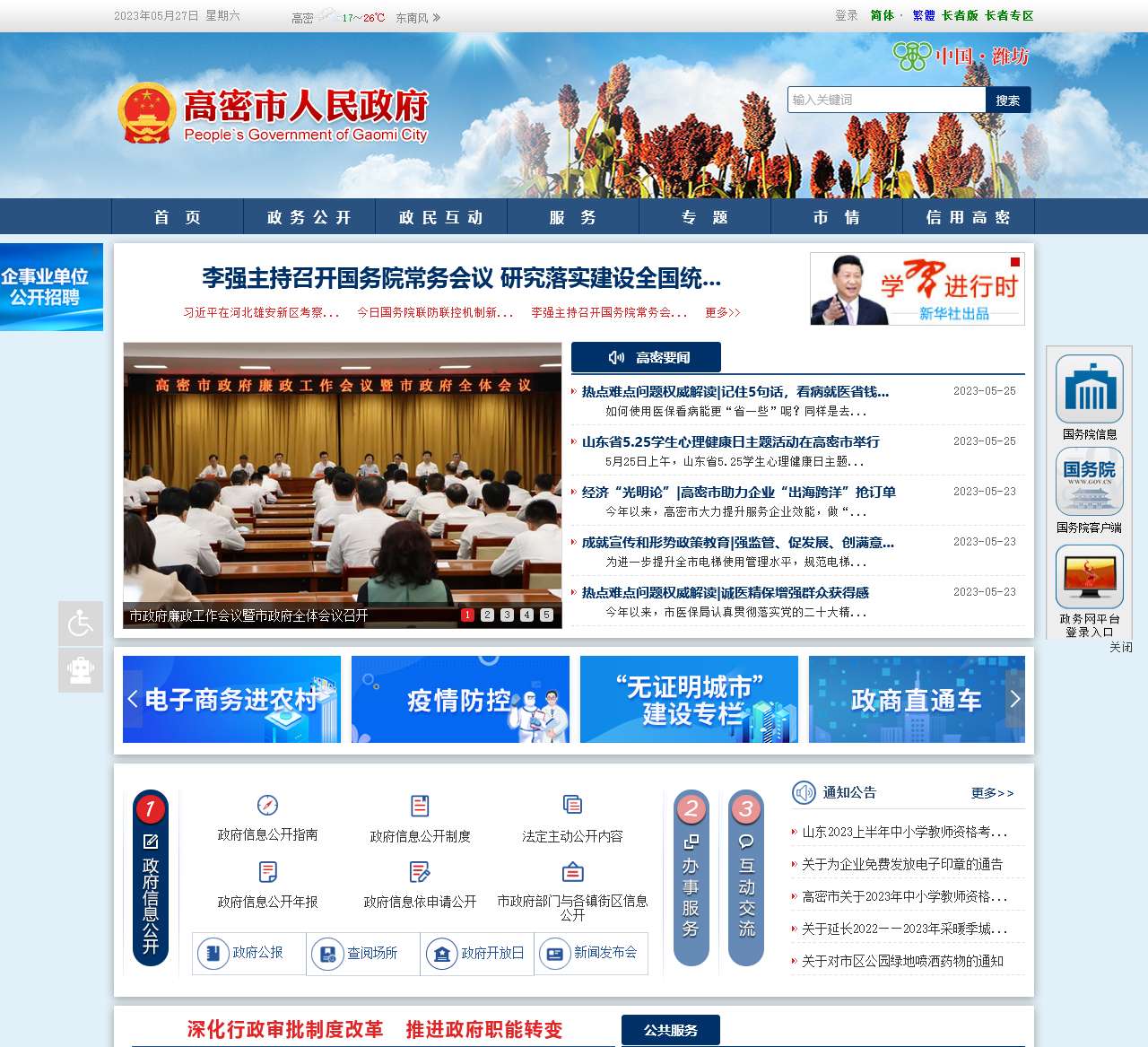 高密市政府网主要包含以下板块和内容: