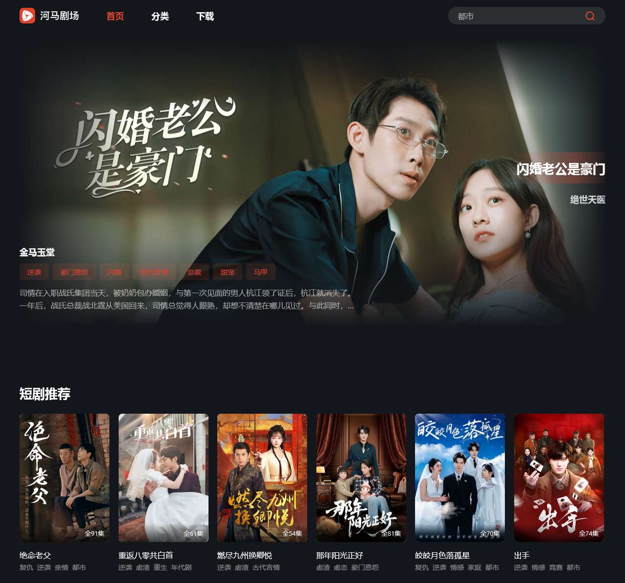 都市豪门系列:包括总裁、豪门恩怨、甜宠、闪婚等情节,融合现代言情与权谋。