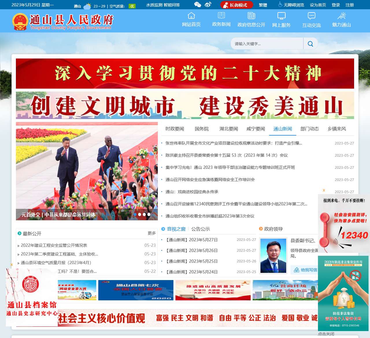 政务新闻:该栏目发布通山县政府的最新动态和政策新闻,包括各部门的通知、会议纪要以及领导活动等。