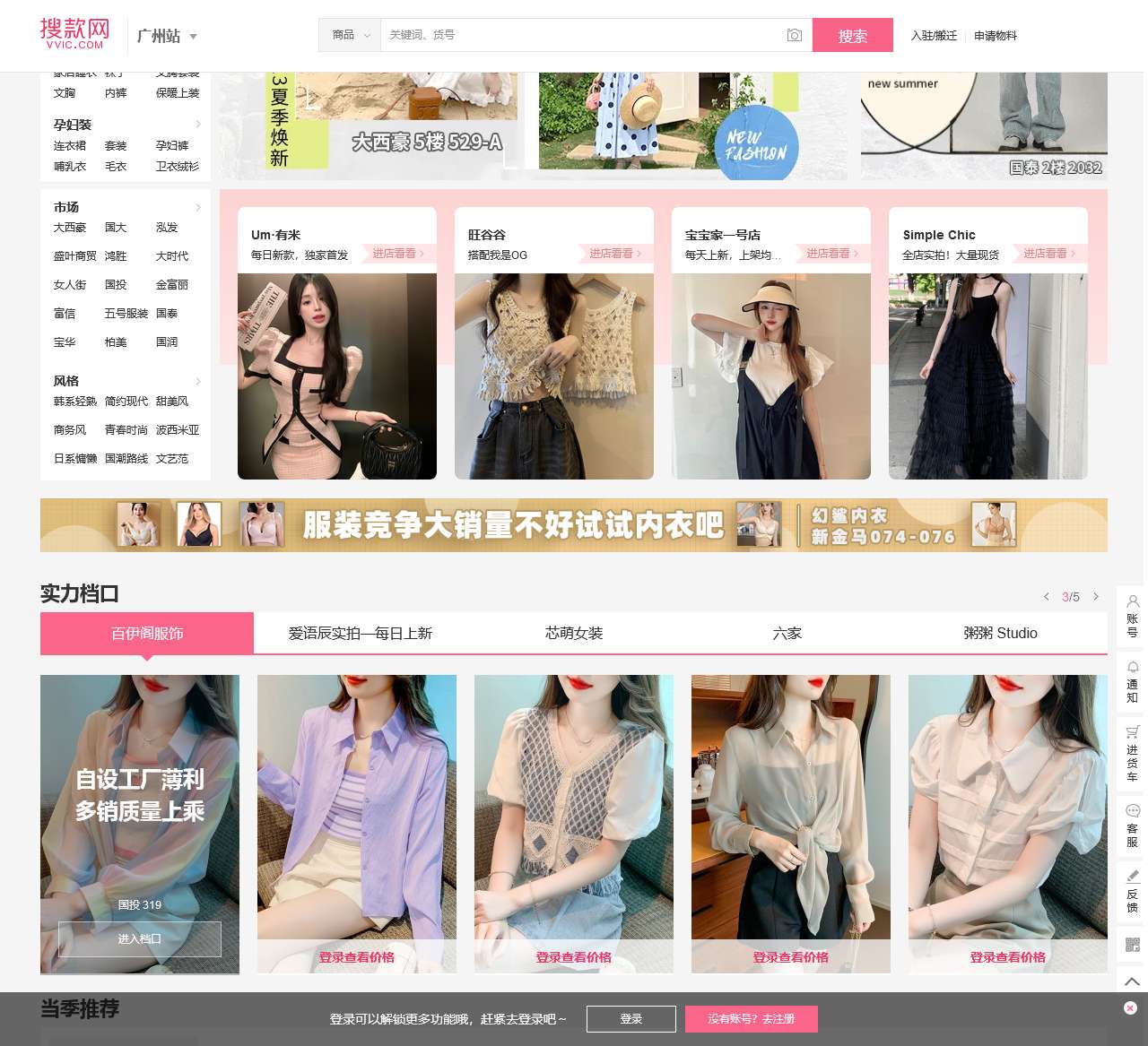 搜款网是全国著名服装批发平台,覆盖广州杭州普宁各大服装批发市场,提供男装女装童装一手货源批发,款式全,每日上新,价格低。支持一键铺货,一件代发,以图搜款。欢迎采购。