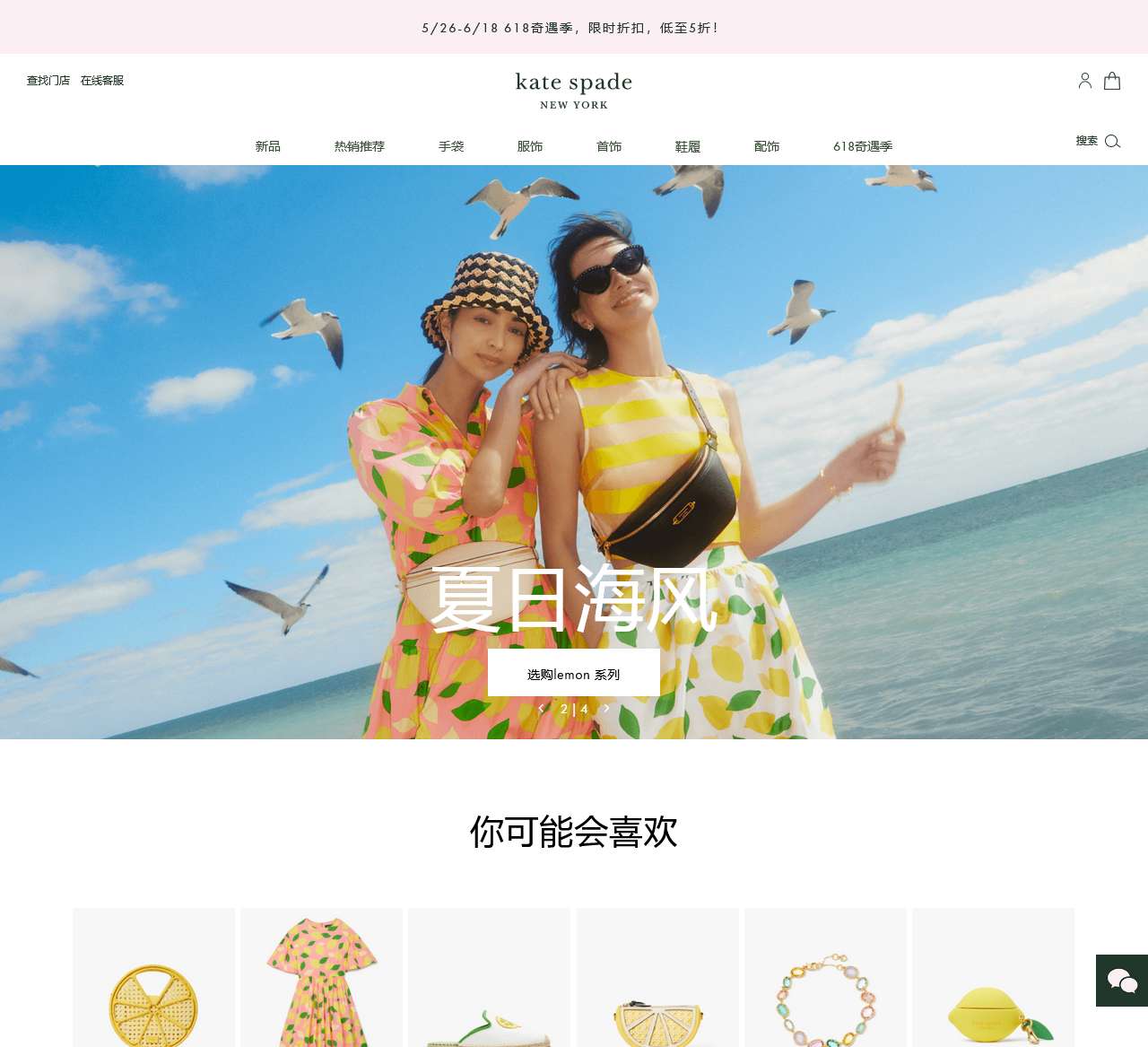 标签:电商网站 购物网站Kate Spade New York kate spade 官网 欧美大牌 轻奢,kate spade 包kate spade new york 1993年成立于美国纽约,以优雅的格调、摩登的设计、别致的色彩缔造了独具魅力的品牌风格,诠释乐观积极的现代女性精神。如今kate spade new york已发展成为全球时尚及生活方式品牌,拥有手袋,服装,首饰,鞋履,配饰和居家装饰等多个产品系列。