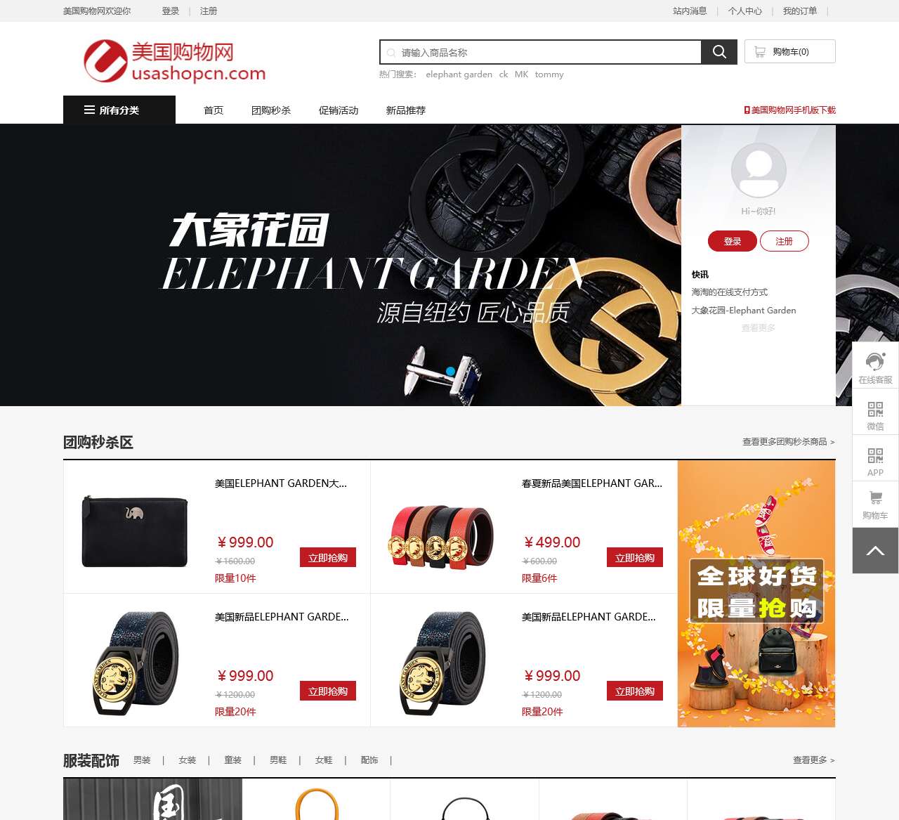 美国购物网(美国ELEPHANT GARDEN)是一家专注于提供优质美国商品的在线购物平台。我们致力于为国内消费者提供方便、安全、可信赖的海外购物体验。无论您是对时尚服装、鞋帽配饰、美妆个护、钟表首饰、营养保健还是母婴用品感兴趣,美国购物网都能满足您的需求。