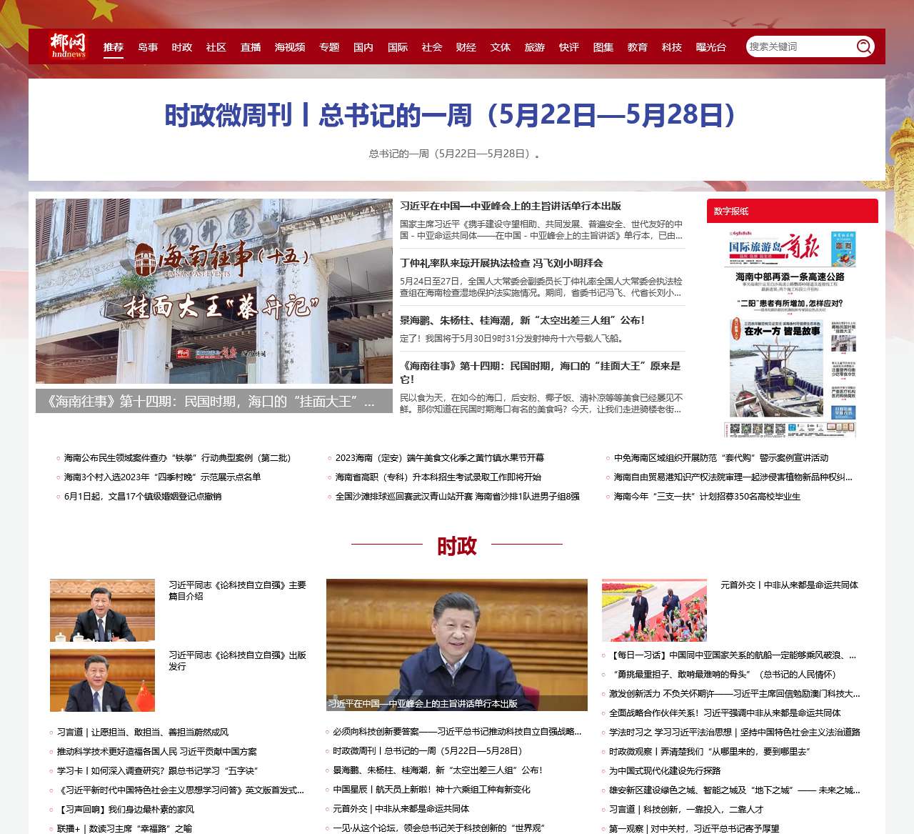 另外,椰网还提供了关于习近平在中国—中亚峰会上的主旨讲话单行本出版、丁仲礼率队来琼开展执法检查、景海鹏、朱杨柱、桂海潮新“太空出差三人组”公布等内容。