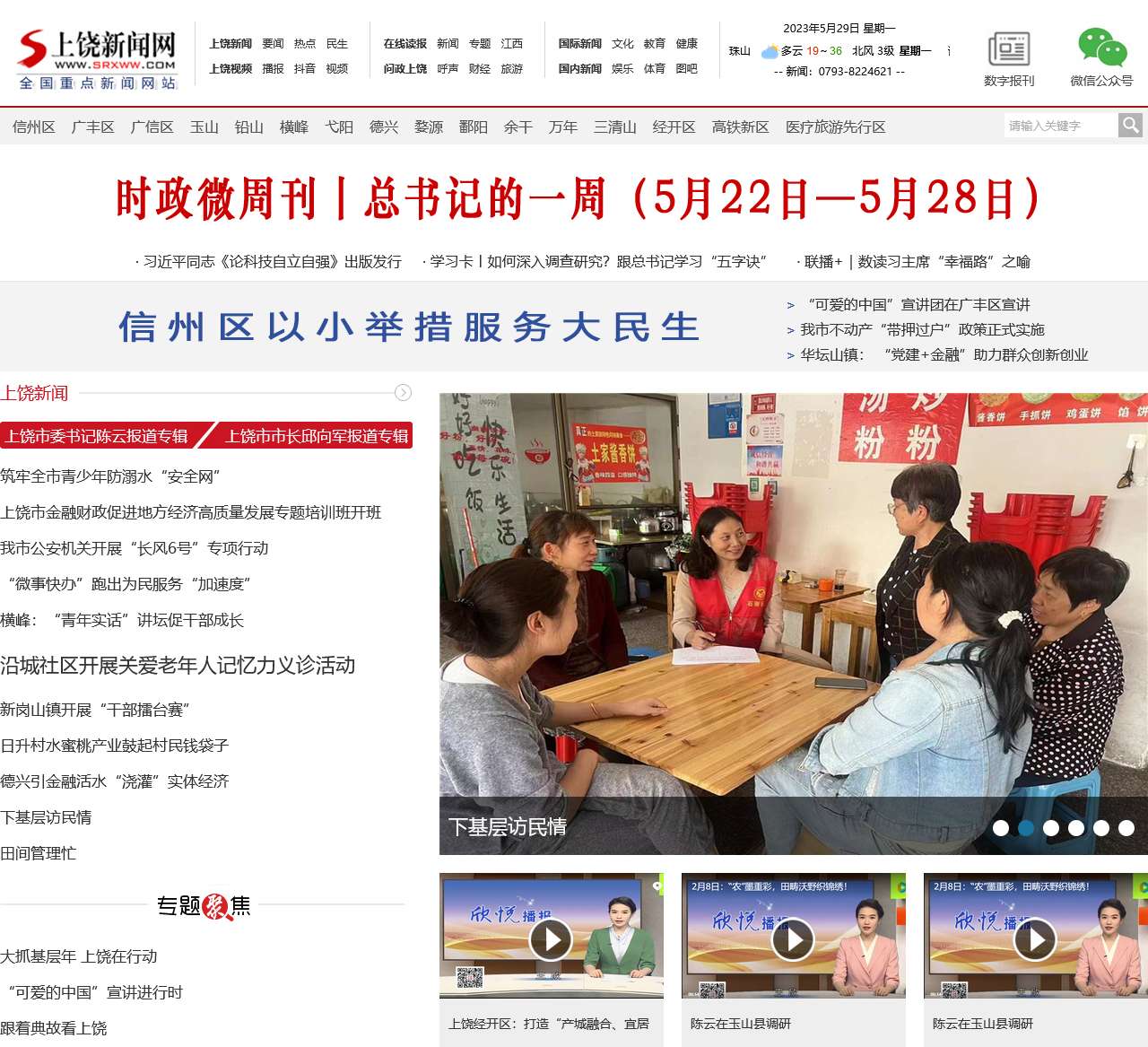 上饶新闻网是由中共上饶市委机关报上饶日报社建设的以新闻为主的大型网上信息发布平台,是上饶最具影响力的新闻网站。上饶新闻网以报道上饶、传播上饶为己任,做到“网罗上饶,纵观天下”,在保持《上饶日报》权威性、公信力的同时,充分发挥互联网特性,有很强的吸引力和亲和力。在传统媒体和新媒体的深度融合中,上饶日报社正逐步构建起全媒体集群,形成“深度权威看报纸、海量互动上网站、随时贴身用手机”的全媒体格局,发掘报纸媒体产业新价值,在全新的数字媒介中延伸上饶日报品牌,构建多元化传播新平台,提升上饶日报影响力和竞争力。