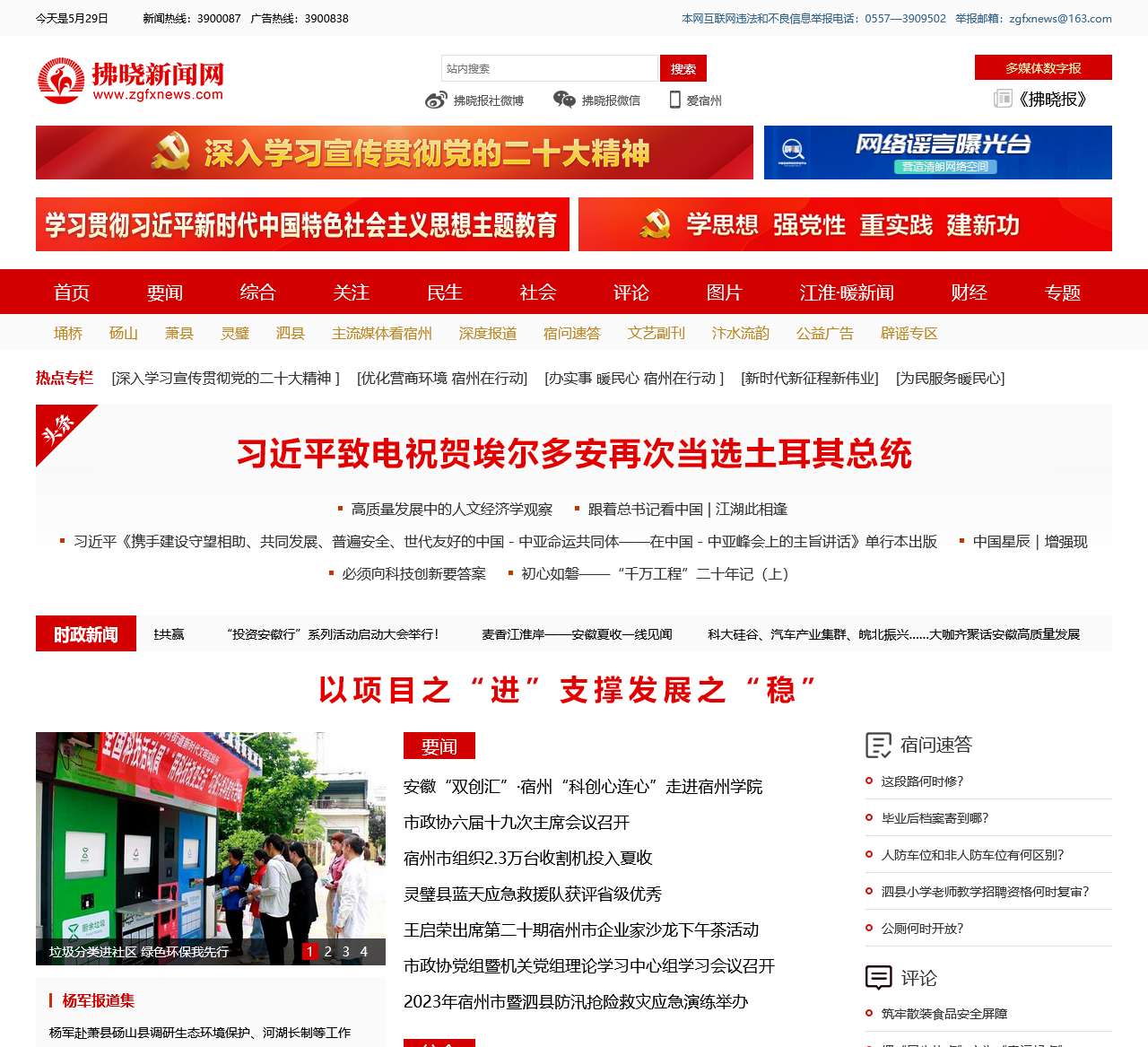 拂晓新闻网是宿州拂晓报社依托自身丰富的新闻资源和品牌优势,以宿州本地新闻为核心竞争力,以拓宽资讯渠道,服务宿州百姓生活为理念,重点打造的一个集资讯等为一体的宿州新闻网...