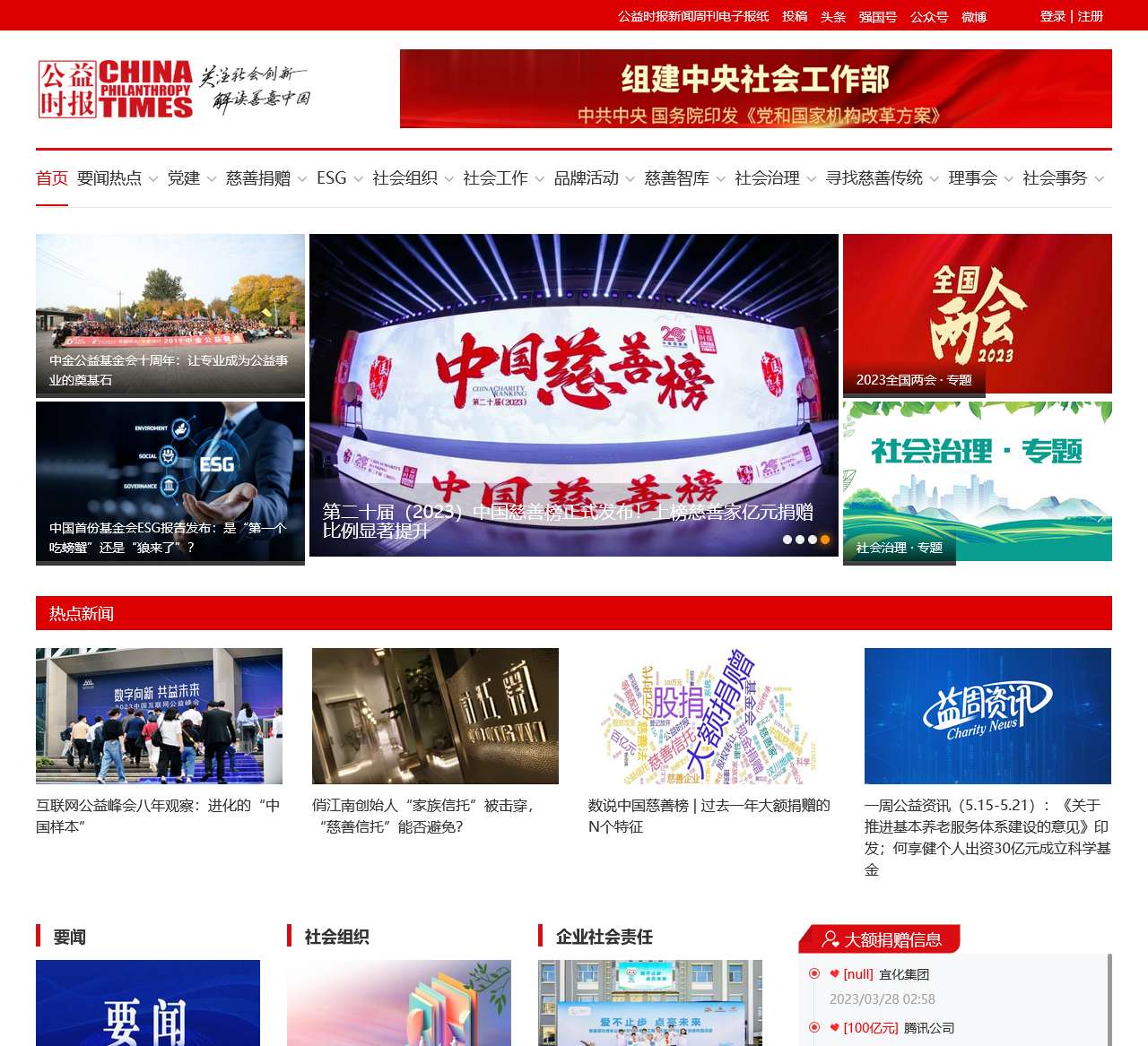 公益时报网是一家致力于公益事业报道和推动的专业媒体平台。我们提供全面的公益资讯、热点新闻和专题报道,旨在促进社会创新、慈善捐赠和企业社会责任发展。以下是公益时报网首页内容的整理: