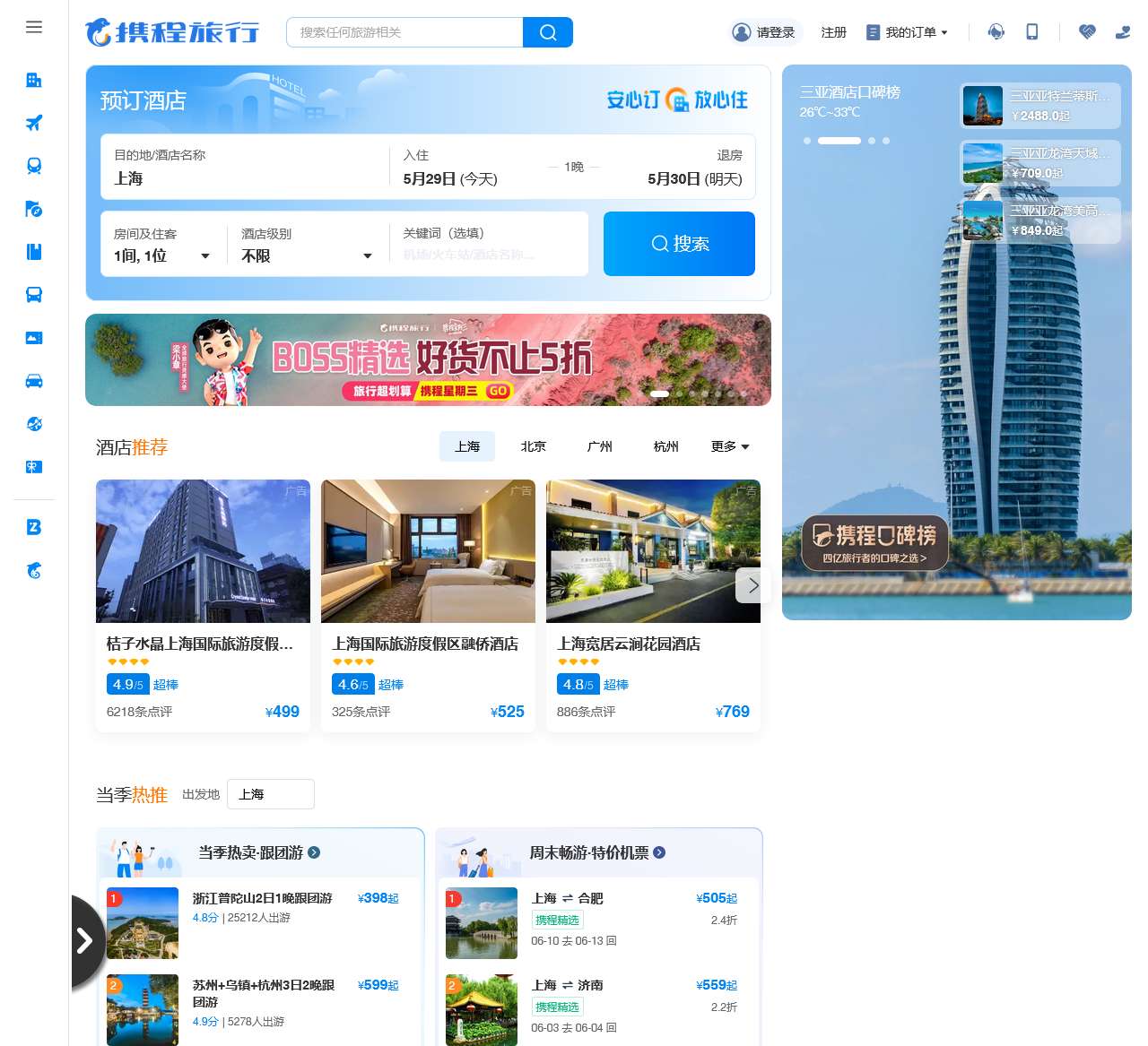 以下是携程旅行网首页内容的整理: