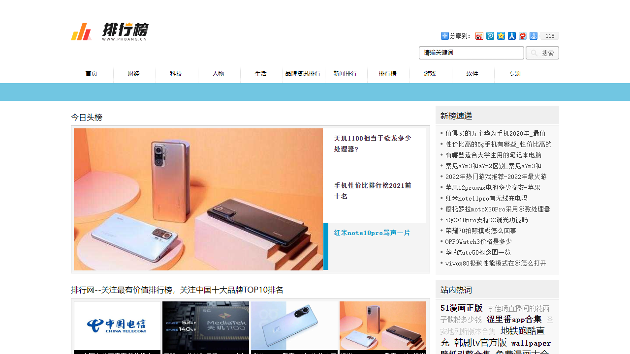 排行榜–提供热门有价值排行榜,游戏下载,以及十大品牌Top10排名,内容涵盖财经类、科技类、游戏类、人物类、生活类、电影电视类、行业类相关排名,力求真实、客观、权威及富有价值。开排行榜类网站之先河。