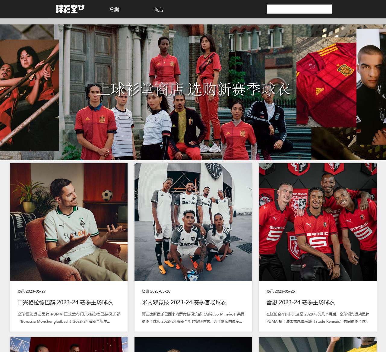 球衫堂是一个专注于足球团队和足球品牌的网站,提供各种类型的足球相关商品。以下是球衫堂网站首页的重大内容: