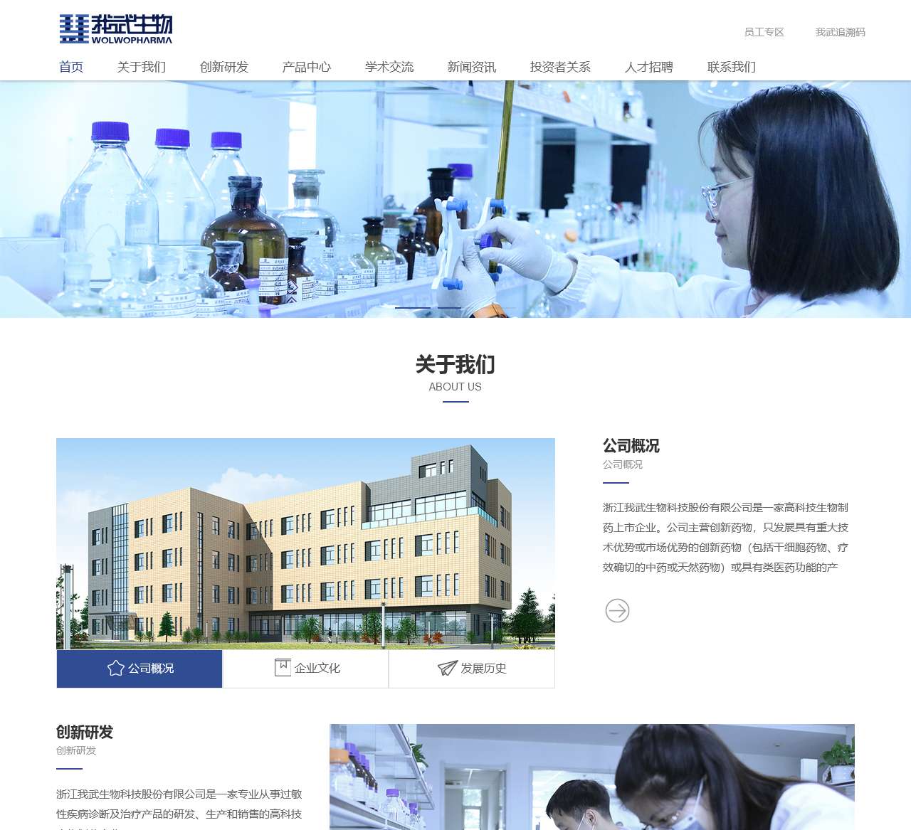 我武生物是一家具有强劲研发能力的生物科技公司。我们致力于新药的研发和创新,以提供高质量的医疗产品和解决方案。以下是我武生物的网站首页的内容整理: