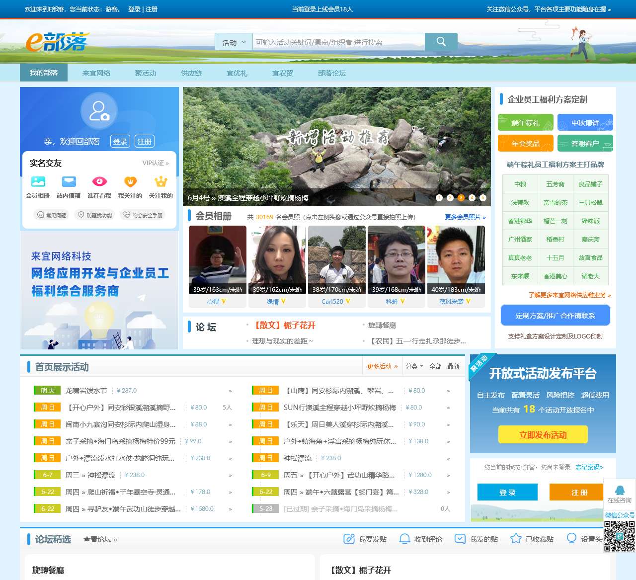 E部落是一个功能齐全的网站,为用户提供各种实用的服务和活动。通过关注我们的微信公众号,您可以随时掌握平台的各项主要功能,方便您登录和注册账号。目前,我们有18位会员在线登录,您可以轻松与他们互动。